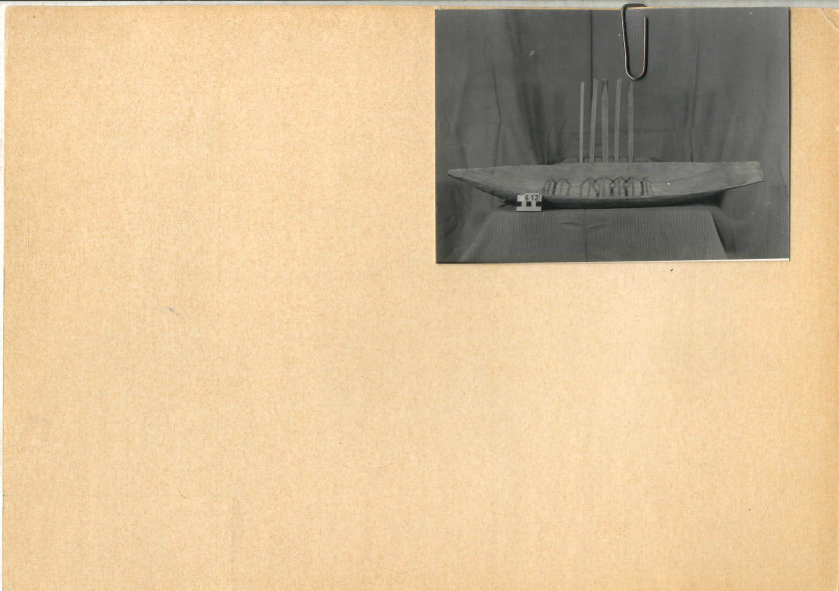 Bemerkung: Angaben des Sammlers: Die Boote der Canelo sind wie die der Quijo im allgemeinen 6 und 12 m lang, 0,60 bis 1,20 m breit. Es gibt jedoch auch kleinere und größere bis zu 18 m Länge. Der Vordersteven hat die Form eines Löffelbugs, das Heck läuft in eine Plattform aus. Zur Fortbewegung dienen Paddel mit Krückengriff, sogenannte Krückenruder (cahuina), und bei Fahrten stromauf wird das Boot mit einer Bambusstange (tauna) gestakt.